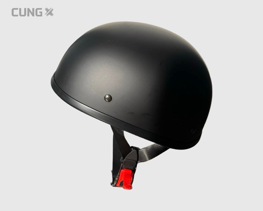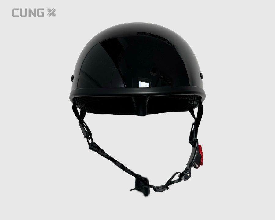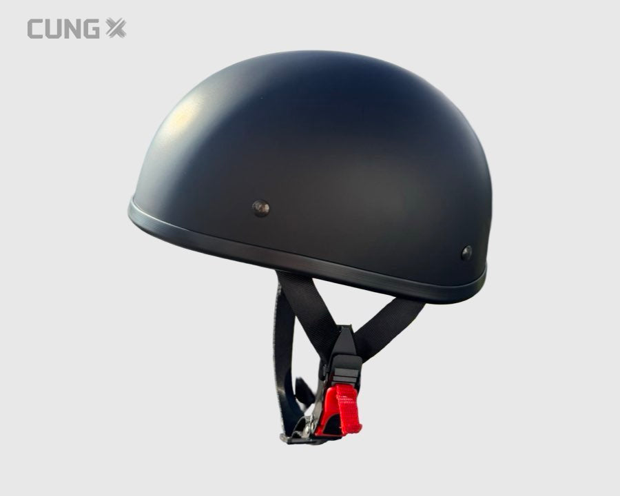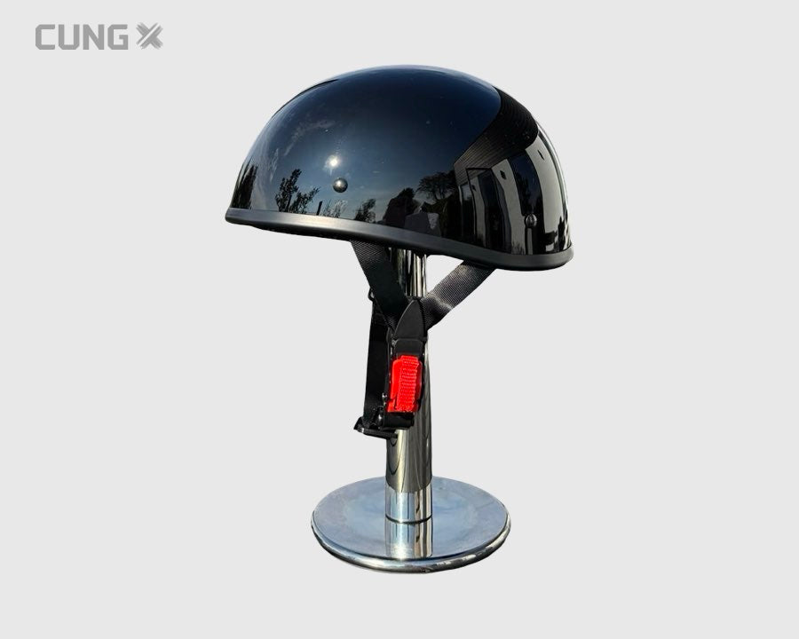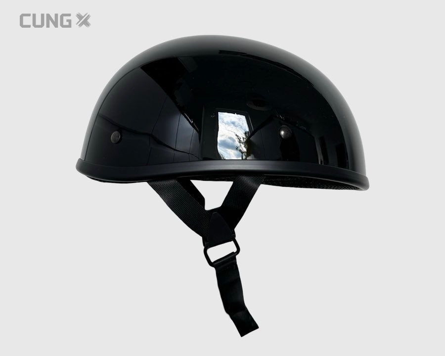 Stilfuld og komfortabel half face-hjelm i klassisk tyskerstil – også kendt som æggeskalshjelm.