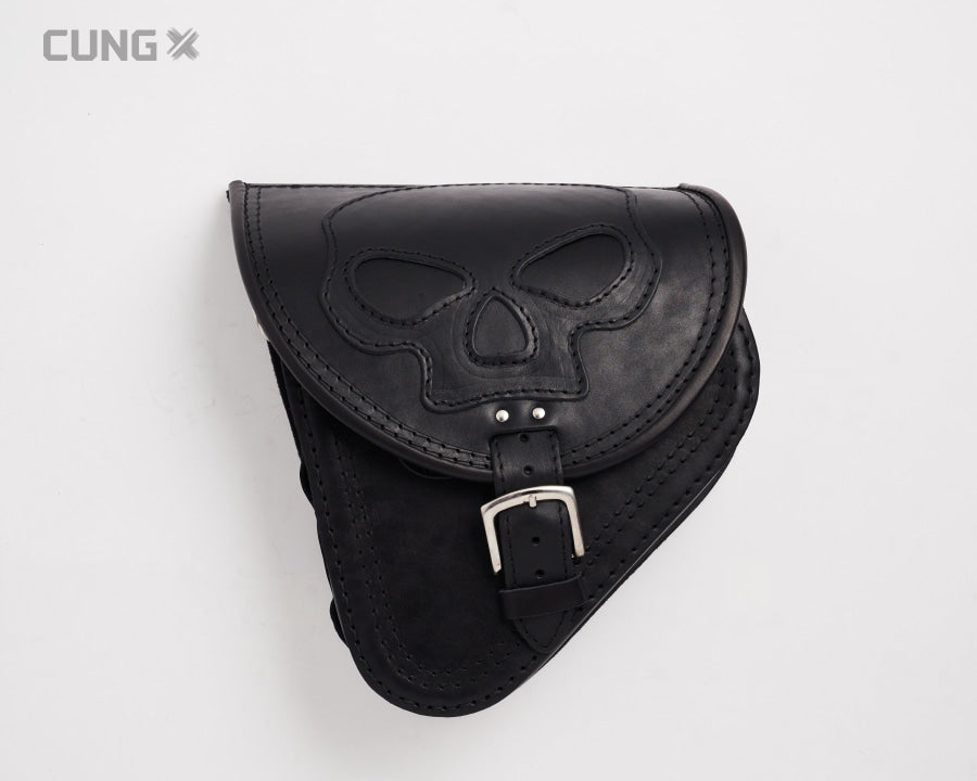 Bestseller blank sort sidetaske med dødningehoved. Tasken er produceret i okselæder i høj kvalitet, som både er slidstærkt og nemt at vedligeholde.